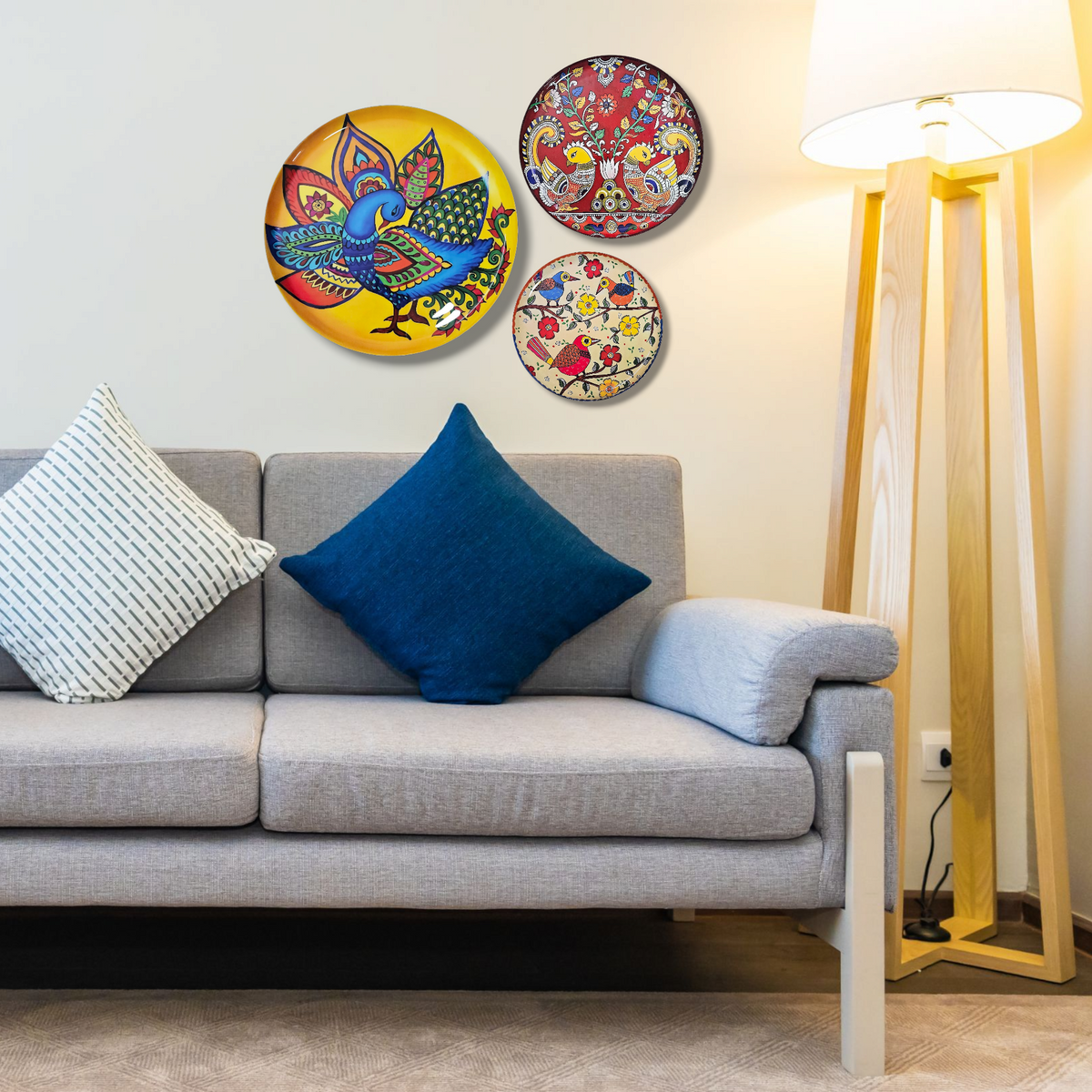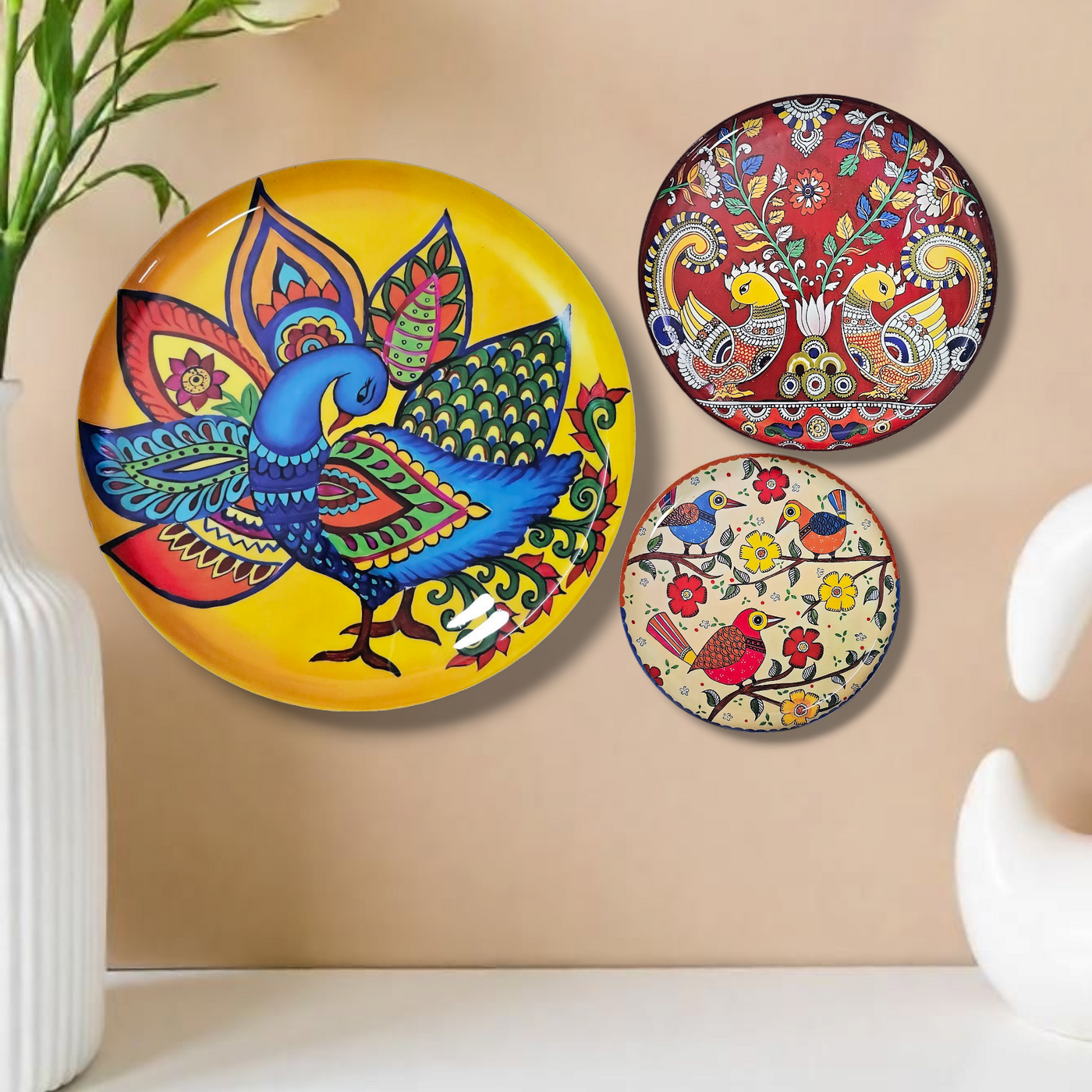 Noblenest Madhubani Metal Wall Plates Set of 3 (12, 10, 8 Inch) – Wall Decor for Home & Office