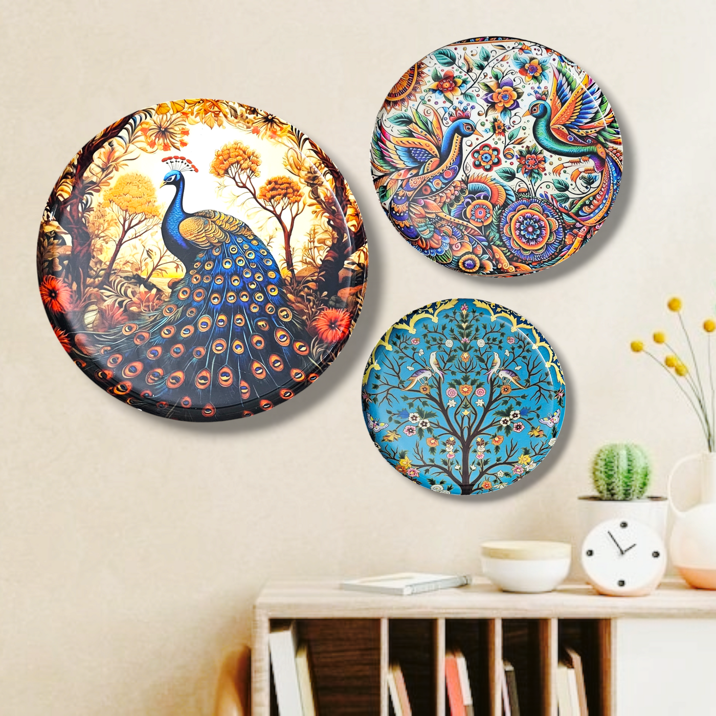 Noblenest Madhubani 3 Metal Wall Plates Set of 3 (12, 10, 8 Inch) – Wall Decor for Home & Office